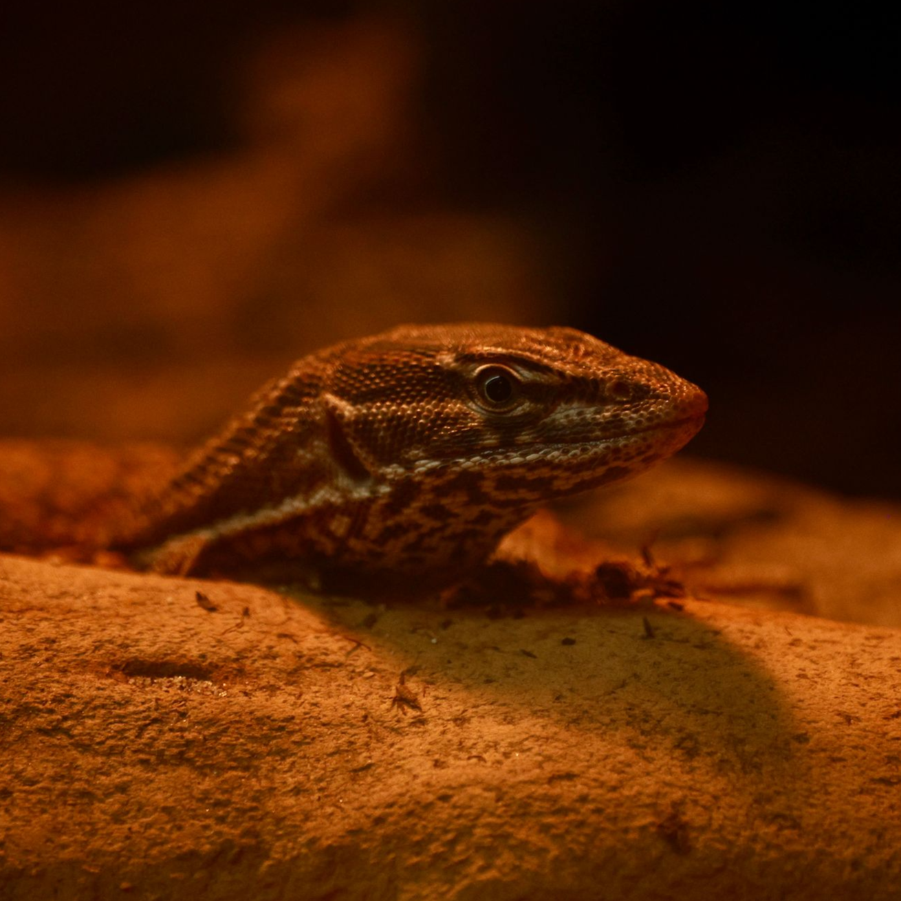 Taz the Red Ackie Monitor is a lizard native to the rocky savannas and grasslands of northern Australia. Red Ackie Monitors are intelligent, active lizards known for their bold personalities and coloration. While smaller than many monitor species, they’re big on curiosity and energy, using their claws to dig and explore. Taz came to us through a rehome adoption, after his previous family could no longer care for him.