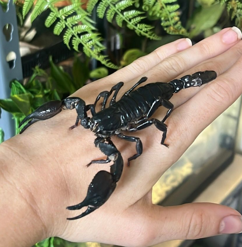 Phil, our Asian Forest Scorpion is native to forests of Southeast Asia. He’s one of the largest scorpion species in the world. Phil is a “look, don’t touch” ambassador, helping people overcome fears and misconceptions about scorpions and other invertebrates. While he does have venom, it is mild and mainly used to subdue prey, posing no serious threat to humans when left undisturbed.