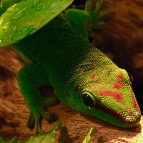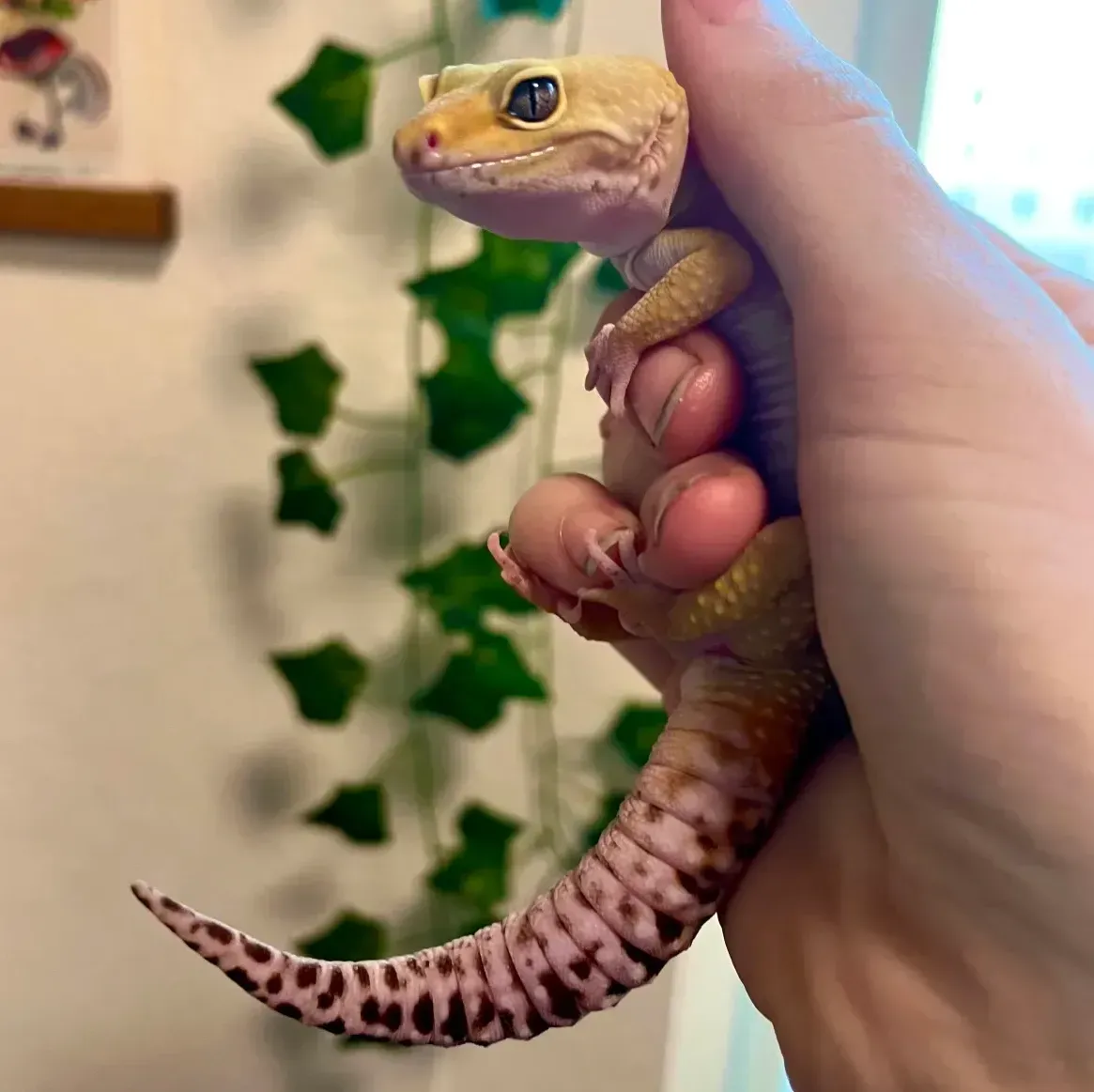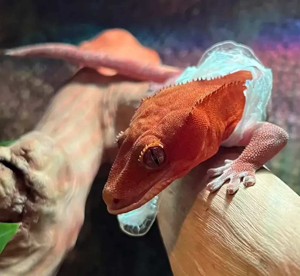 is a Crested Gecko that was shipped across the USA after getting into an accident at a pet store in another state. Ducky unfortunately had his head closed in an enclosure door, causing his pupil to burst and his lip to tear. Crested Geckos are a species of gecko native to New Caledonia, a group of islands in the southwest Pacific. They are one of the only gecko species that can completely regenerate their tail only once—if they lose it, it never grows back.