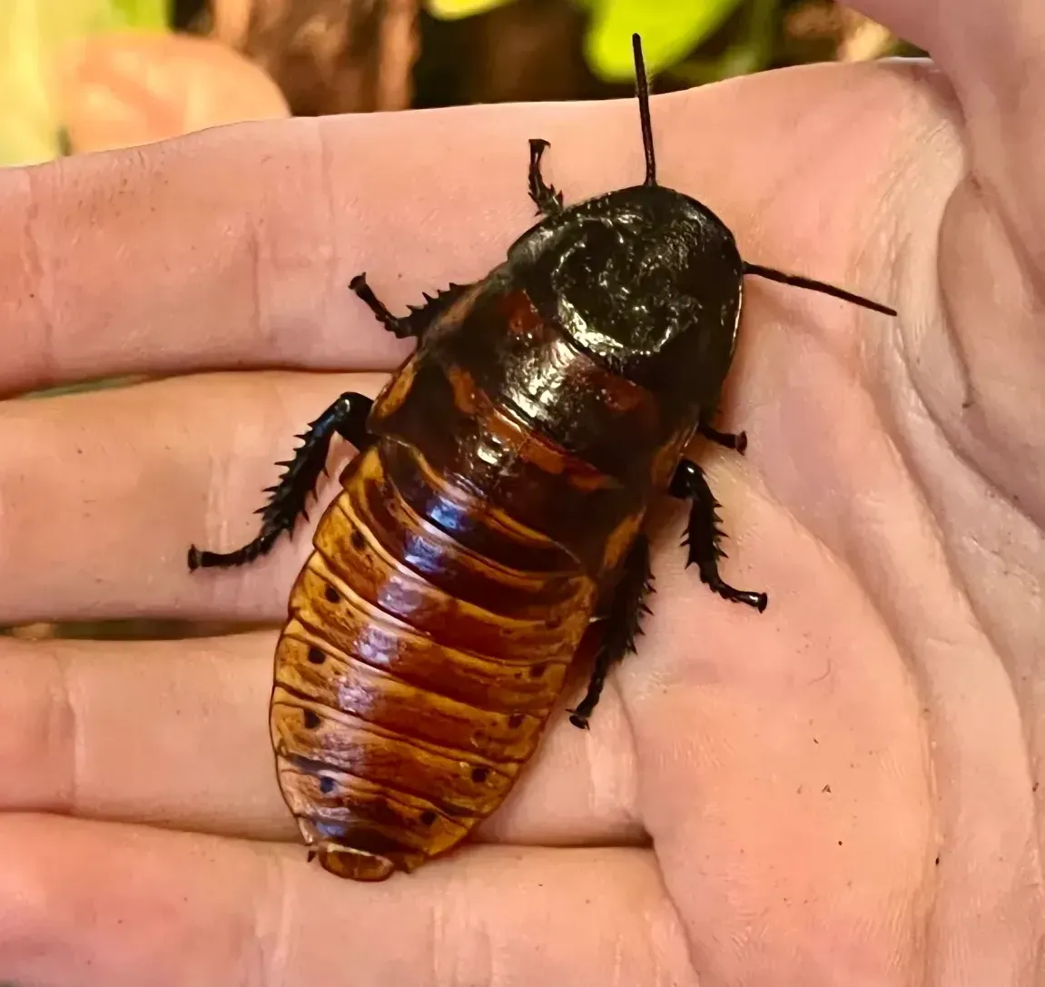 Hank and Harry are our two Madagascar Hissing Cockroaches, a species known for their unique ability to "hiss" as a form of communication. Unlike most insects, they create sound by forcing air through small openings (spiracles) on their abdomen instead of rubbing body parts together. They have different hisses for mating, territorial disputes, and warning off predators.