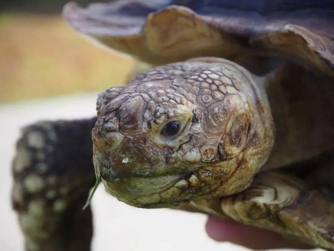 Meet our 3 Sulcata tortoises Oogway, Kenya, and Zulu! These African grassland tortoises are the 3rd largest tortoise in the world weighing in at over 150 pounds! Sadly, in the wild they are classified as Vulnerable by the IUCN due to habitat loss and illegal poaching for the pet trade. Our rescues have a condition called pyramiding, which causes abnormal, raised growth on their shells. This condition is typically the result of poor husbandry in their early years.